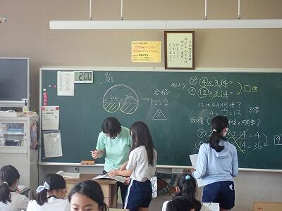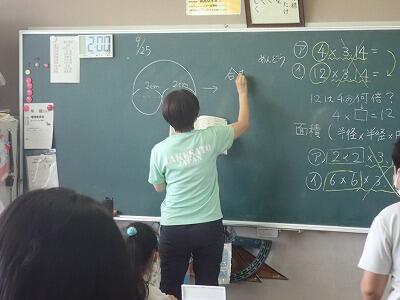 6年生は算数。図形の問題に少し苦戦しています。でも、子供たちはがんばって問題に取り組んでいます。
