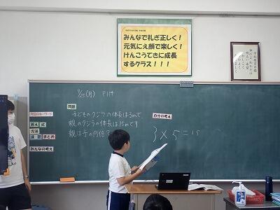 算数では、進んで手を挙げてみんなの前で発表してくれています。