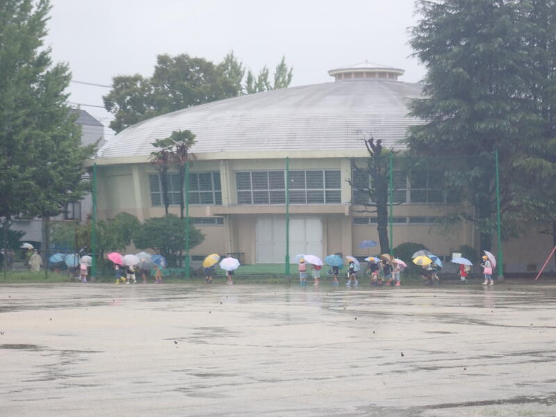 雨は降っていましたが、児童は給食を食べ下校しました。