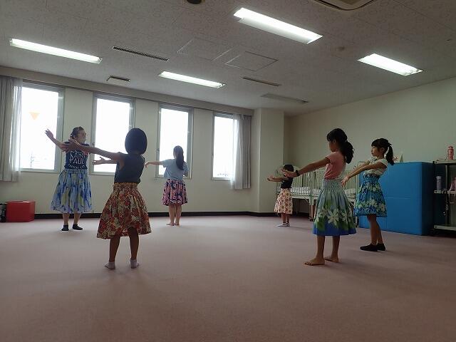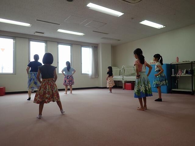 今日は、全員で隊形移動や動きを練習します。赤、緑、黄色の大きな腰に巻く布(ビックスカーフ)がひらひらとき