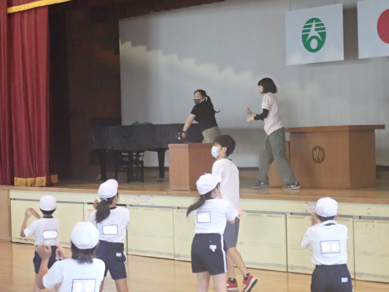 反対の「後ろ」に動きます。子供たちは、とても楽しそうに動いていました。