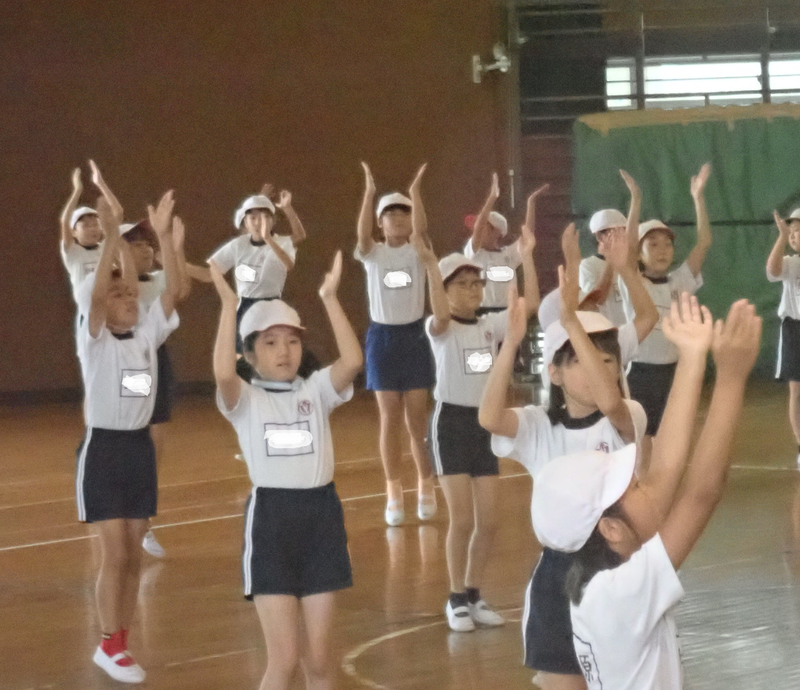 4年生は体育館で全体練習。運動会で踊るリズムダンスの練習を行いました。
