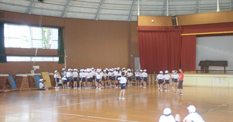 3の1は体育館で体育。今日は学年の運動会練習はなく、通常の体育授業です。