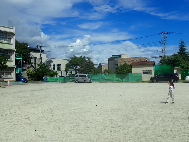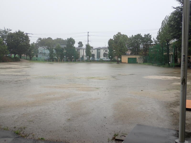 校庭は、朝からの雨が広い範囲で溜まってきています。