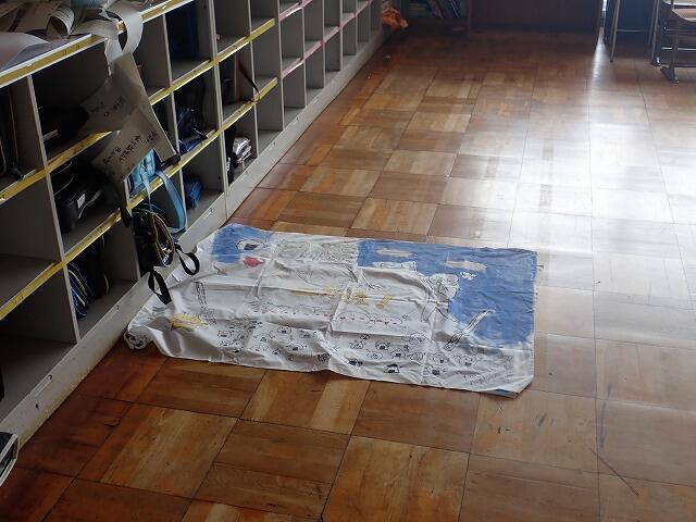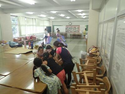 入り担任のサポートをしています。隣りの教室には、運動会でお披露目する学級旗の準備が進んでいます。