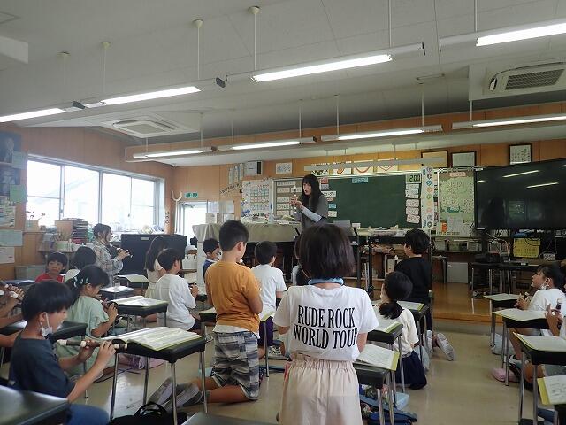 校舎をまわっていると「もののけ姫」の曲が聞こえました。4の2の子供たちがリコーダーで練習中。