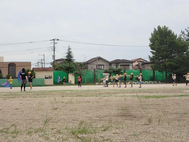 短い時間でしたが、校庭練習も行いました。バトンクラブの子供たちは、わかたけホールや
