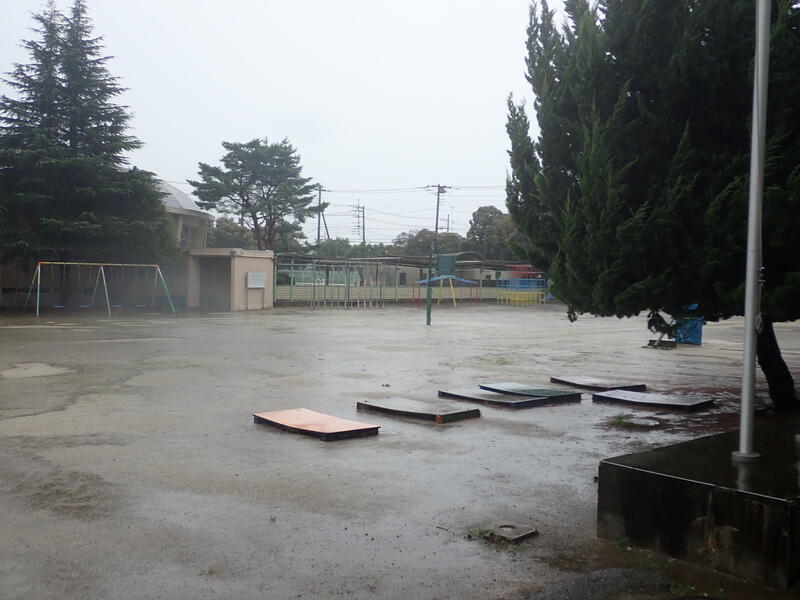 台風接近による強い雨が降る中でしたが、子供たちは登校しています。