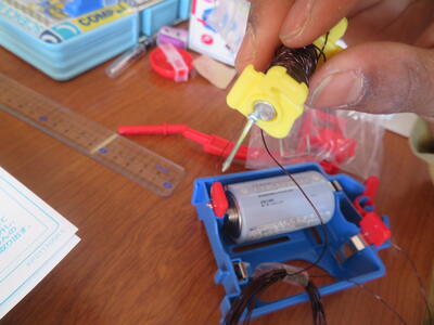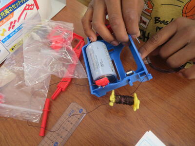 今回は、鉄心を通して、周りにコイルを巻きました。