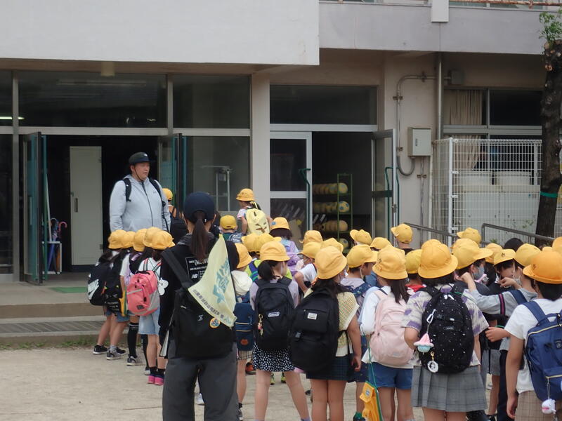 その時、下校する子供たちに気づき、子供たちに「お先にどうぞ」と道を譲ってくれました。