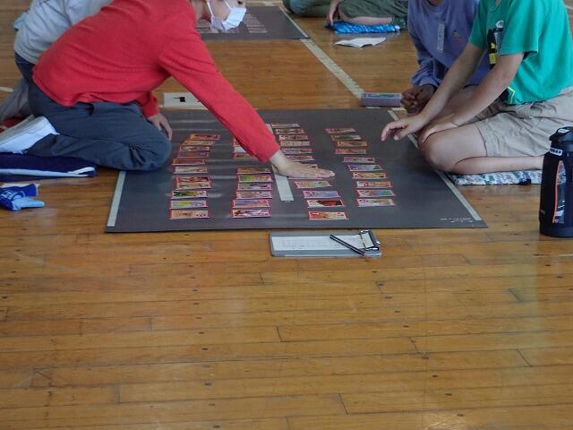 今年は、コロナ禍の中で工夫して行っていたジャンボかるた遊びではなく、正式なかるた遊びを学習します。
