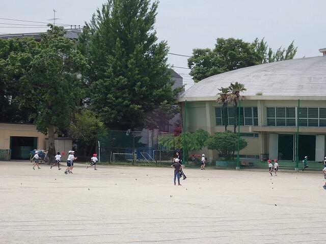 業間休み。実習生も学校に慣れ、子供たちと遊んでいます。