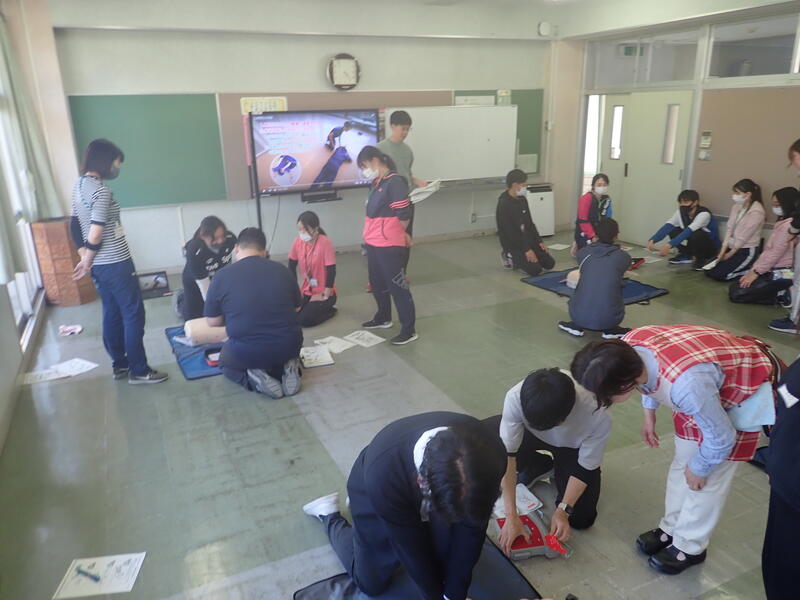 これから始まる水泳指導に向け、心肺蘇生法の研修を行いました。