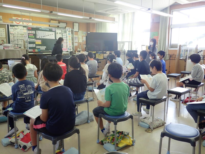 4年生音楽。ただ今、教科書を見ながら曲を聴いているようです。