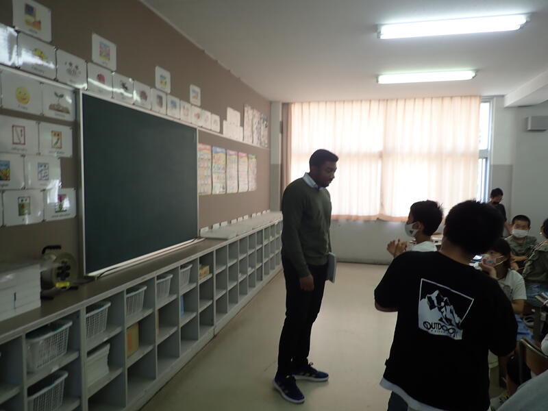 6年生外国語。木曜日は、ALTと一緒に学習します。うまくできるかな?