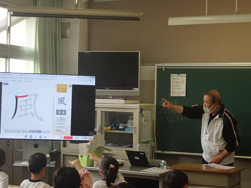 2年生は漢字の授業。ドリルを使い学習に取り組んでいます。