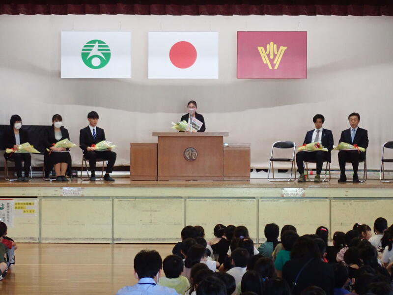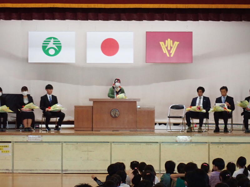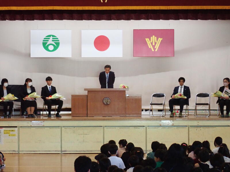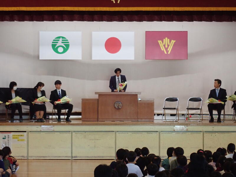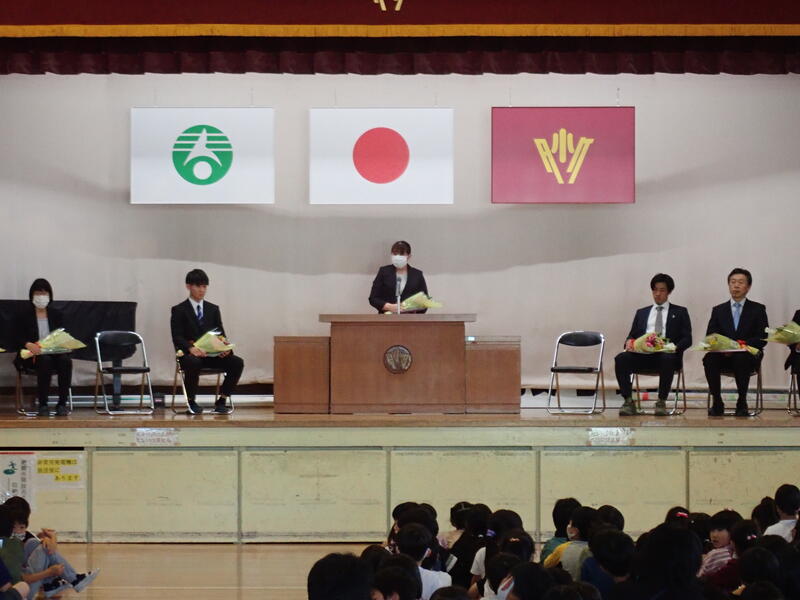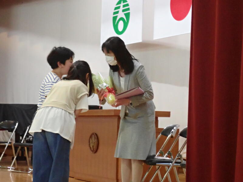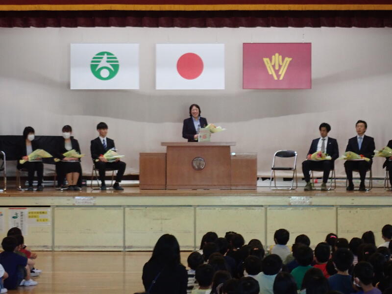今日は、これまでお世話になった先生を迎えての離任式です。