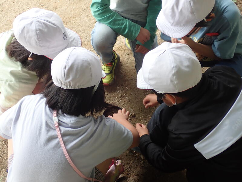 3年生は、学年花壇で理科の学習。