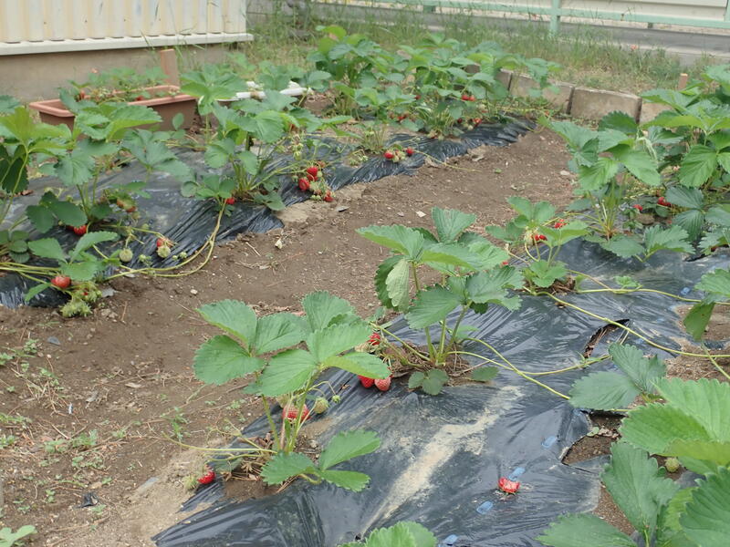 678組の花壇ではいちごが育っています!