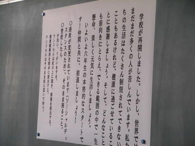 来週以降には、学校再開に向けた新たなお知らせをさせていただきます。今後とも、どうぞ宜しくお願いいたします。