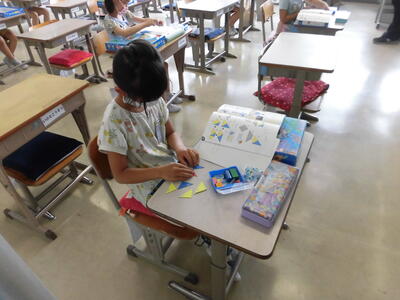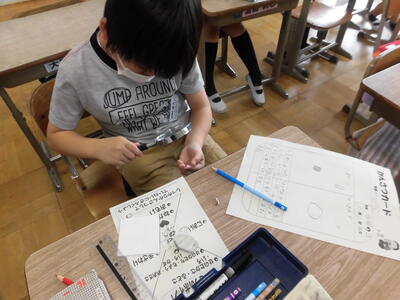 1年生は、文字を上手に書く練習です。文字の中心は、どこかな?