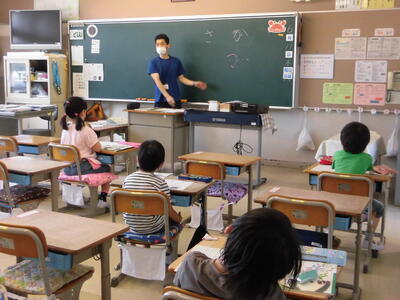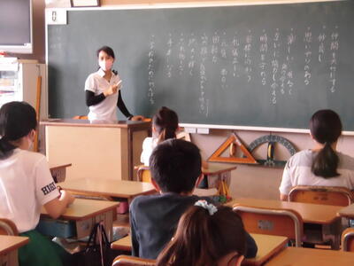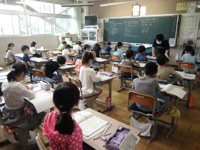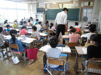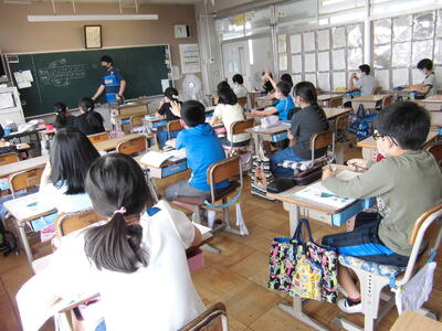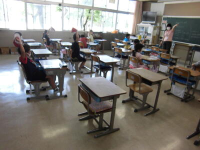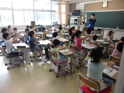 1年生の午後の授業も、ところどころに動きを入れながら、