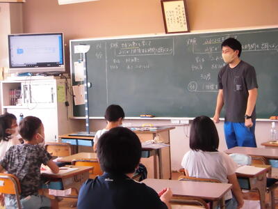 高学年を中心に、一緒に体育をやったり算数の授業をみてもらったりしました。