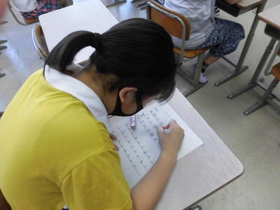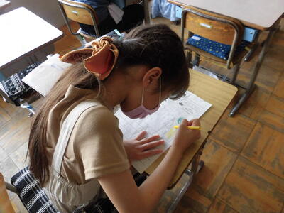 マスクがあり、まだ十分な話し合い活動は難しいですが、真剣に話を聞き、きちんとノートを書く授業態度にいつも感心しています。