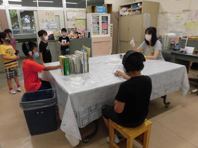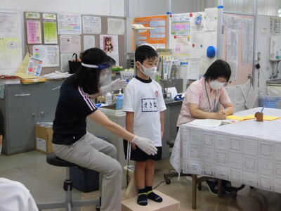 5年生は聴覚検査です。共有するものは、先生方が一つ一つ消毒をします。