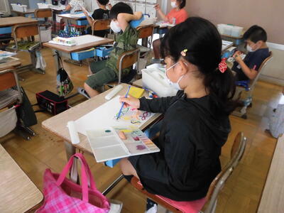 3年生は、絵の具を使用して絵を描きました。水の量を上手く調節し、きれいな色合いが出ています。