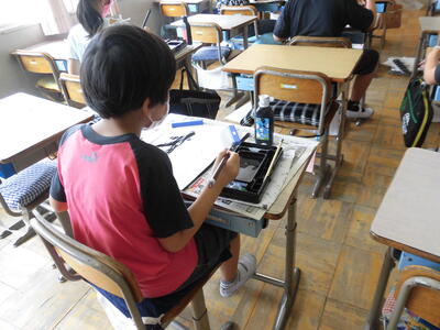 6年生は自分のお気に入りの場所をタブレットで写真に収め、それをもとに絵を描く予定です。