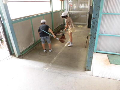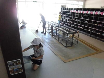 掃き掃除や机拭きなどを中心に、お話をしないで、密にならないように気を付けながら朝清掃に励みました。