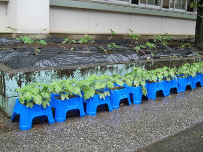 理科で学習する「ほうせんか」と「ひまわり」は、先生たちがタネをうえました。