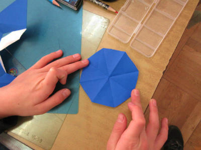 折り紙を切り抜くことによって、正多角形の性質について理解していきます。
