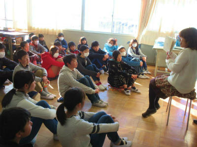 今日は、4年生の教室で「読み聞かせ」が行われました。