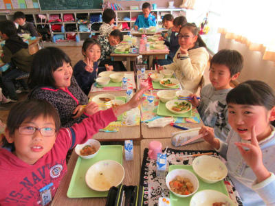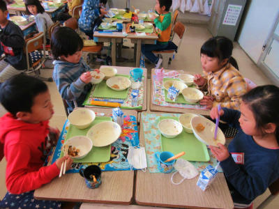 1年生は給食時のマナーがすばらしいのですが、食欲も旺盛です。