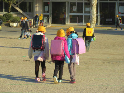 南門では、校務員さんが腰をかがめてあいさつをしてくださっています。