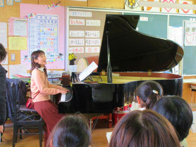 春日部市出身のシンガーソングライターの「あえか」さんが、武里小学校の音楽室で合唱の指導をしてくださいました。