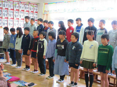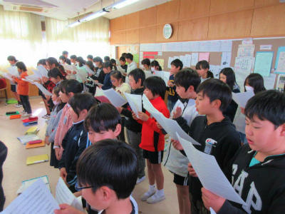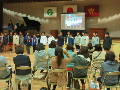 作文発表の後、子どもたちの思いが込められた合唱です。まだ卒業式まで1ヶ月あるのですが、すでに涙も・・・。
