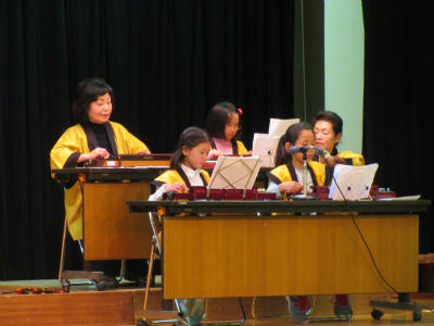 季節のコンサートでは、どようひろば(放課後子ども教室)で和楽器を教えていただいている児童が、講師の方とともに演奏しました。どようひろばOBの中学生も、一緒に演奏してくれました。