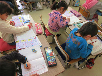 理科、道徳の授業をやっているクラス、発表会や二分の一成人式をやっているクラスと様々でした。