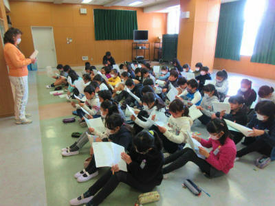 冷え込む体育館の中で、音楽朝会が始まりました。