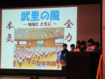 発表内容は『武里の風~地域とともに~』というタイトルのもと、武里小学校が、いかに地域との結びつきが強く、様々な連携をしているかを解説するものでした。