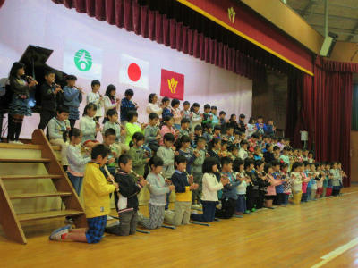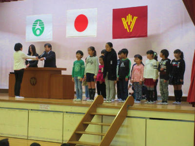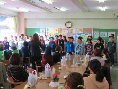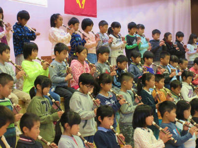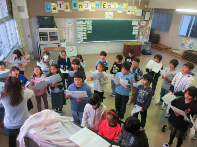 児童代表が感謝の言葉を述べた後、全員で「ふるさと」を合唱しました。
