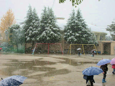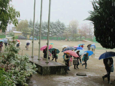 下校時刻になると、ようやく雪がやんで傘が不要となりました。
