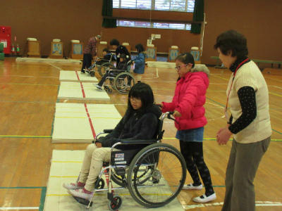 段差を越えるときの配慮、障害物を避けた押し方など、車いすに関する様々な学習ができました。