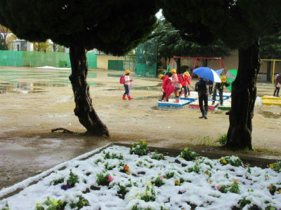 読み聞かせがある日はずっと晴天が続いていたのですが、今日は驚くことに雪の朝になりました。雪の日の読み聞かせもいいですね。