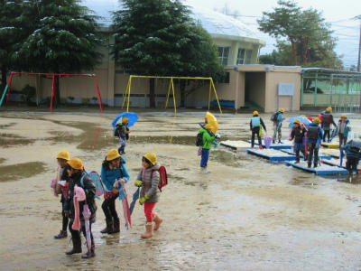 しかし、校庭は雪とみぞれの影響で水浸しです。水はけのよさでは定評のある武里小の校庭ですが、これではしばらく使用できません。