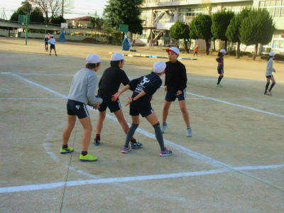 6年生が、フラッグフットボールの基本的な動きの練習をしていました。