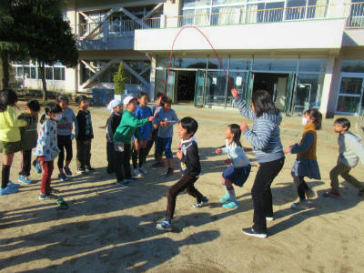 3学期のわんぱくタイムでは、リズム縄跳びを行います。